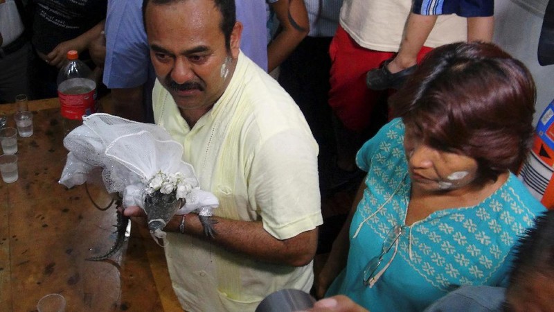 Buaya itu dibaptis dulu sebelum ke proses pernikahan. (Foto: Rusvel Rasgado/ REUTERS)