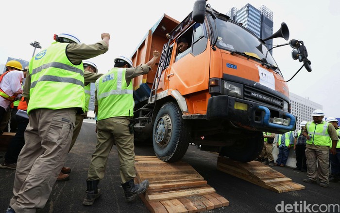 Uji coba tersebut dilakukan menggunakan truk bermuatan 46,6 ton.
