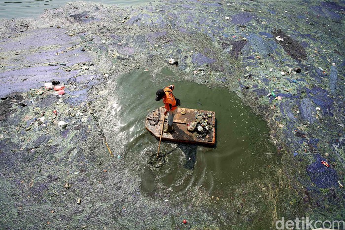 Jakarta - Kondisi Danau Sunter Barat, Jakarta Utara, masih kotor. Pasukan oranye pun terus berjibaku membersihkan danau ini.