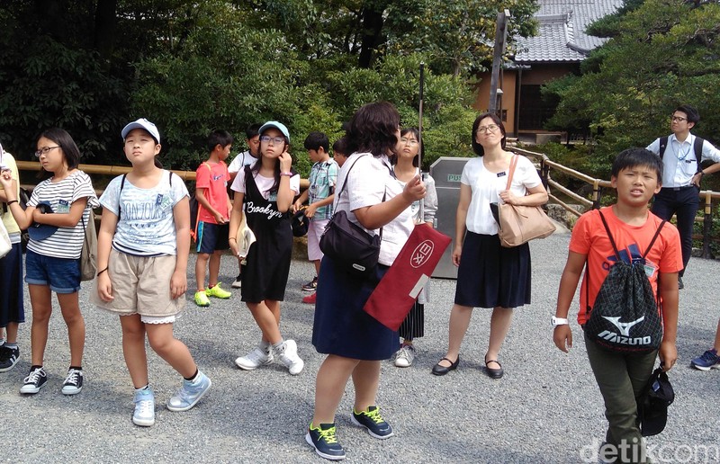 Para siswa itu ada yang berseragam dan ada pula yang memakai pakaian bebas. Para guru ikut menemani sambil sesekali menjelaskan tentang kuil tersebut. Bahkan, ada dua siswa dengan mimik lucu saat mereka kagum menyaksikan kuil emas.