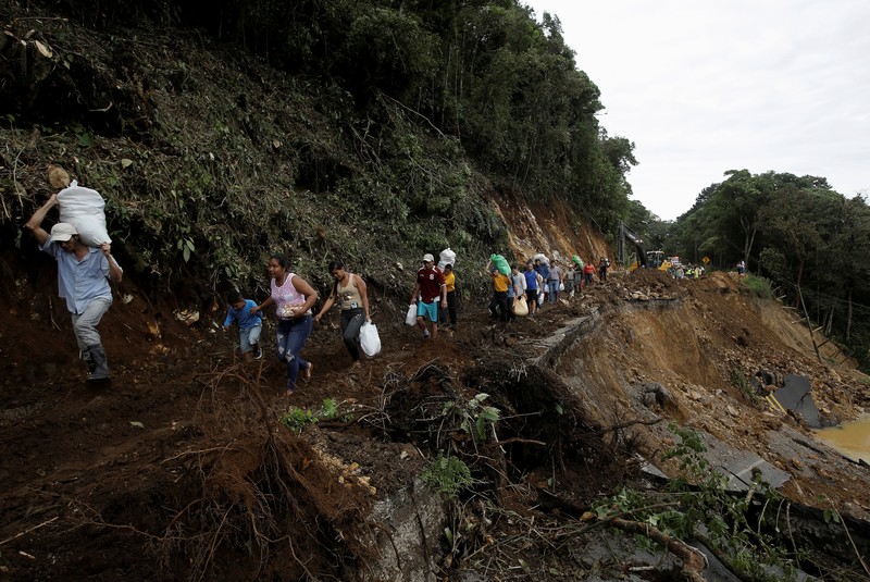 Longsor Putuskan Jalan di Costa Rica BAGIKAN URL telah disalin Warga harus berjalan kaki karena jalanan terputus diterjang longsor. REUTERS/Juan Carlos Ulate. Longsor menghancurkan jalan di Casa Mata, Costa Rica. REUTERS/Juan Carlos Ulate. Longsor ini disebabkan oleh hujan deras yang dipicu Topan Nate. REUTERS/Juan Carlos Ulate. Jalan yang tergerus longsor mencapai ratusan meter. REUTERS/Juan Carlos Ulate. Petugas meninjau lokasi longsor. REUTERS/Juan Carlos Ulate. Topan juga menyebabkan banjir dan kerusakan pada rumah warga. REUTERS/Juan Carlos Ulate.