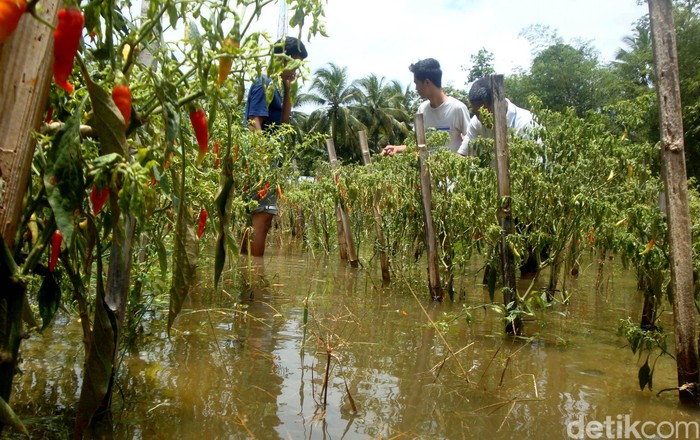 Jakarta - Banjir merendam Desa Banjareja, Kecamatan Nusawungu, Cilacap, Jawa Tengah. Akibatnya sejumlah petani cabai terpaksa panen lebih awal.