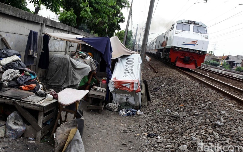 Gubuk Liar Menjamur di Pinggir Rel KA Jakarta-Bekasi BAGIKAN URL telah disalin Bangunan-bangunan liar ini berdiri di panjang rel dari mulai Stasiun Klender hingga Stasiun Buaran. Bahkan rel untuk DDT yang belum difungsikan ikut terjajah gubuk liar. Meski sudah ada larangan membangun, warga tidak peduli dan tetap mendirikan gubuk-gubuk liar. Kebanyakan yang mendirikan bangunan ini adalah para pemulung. Commuter Line melintas di jalur kereta Jakarta-Bekasi. Rel kereta api dijadikan tempat menjemur kasur. Karena tidak ditertibkan, gubuk liar ini semakin hari semakin banyak. Commuter line melintas di rel yang pingginya dipenuhi bangunan liar.