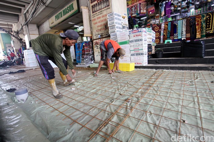Jakarta - Pemprov DKI Jakarta terus merevitalisasi jalur pedestrian di depan Pasar Tanah Abang. Jalur pedestrian itu untuk memberikan kenyamanan pengunjung pasar.