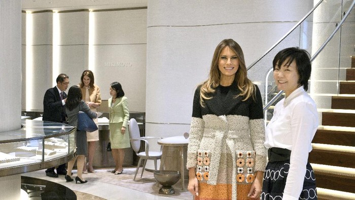 Tokyo - Presiden AS Donald Trump mengunjungi Jepang ditemani sang istri Melania Trump. Melania tampak mengunjungi toko perhiasan di Ginza.