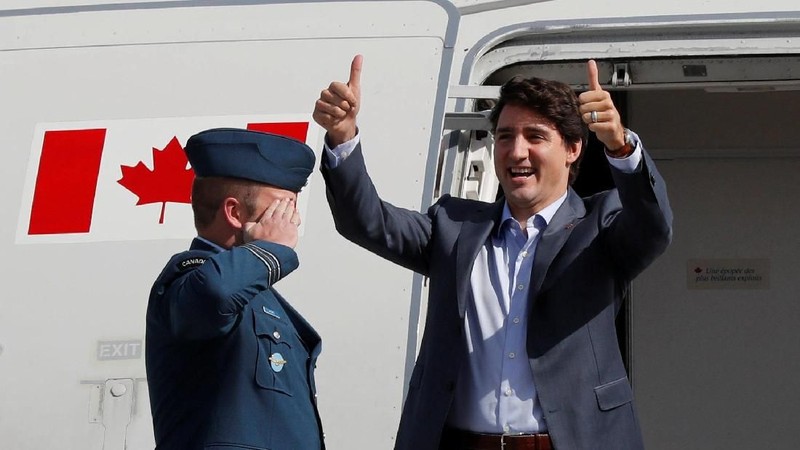 Trudeau tampak begitu bersemangat saat turun dari pesawat (Foto: REUTERS/Erik De Castro)