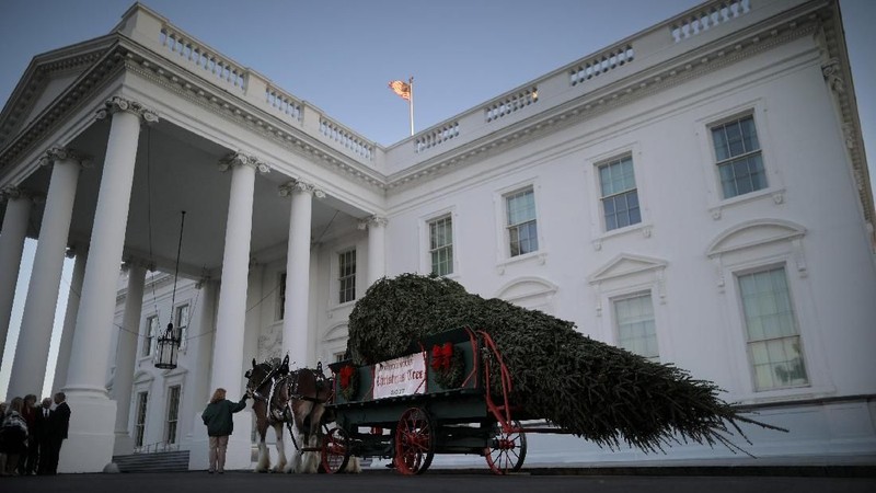 Momen Istri dan Anak Trump Sambut Pohon Natal di Gedung Putih BAGIKAN URL telah disalin Pohon natal itu dibawa dengan gerobak berkuda ke gedung putih pada Senin (20/11/2017) waktu setempat. Melania dan Barron kompak berbaju dengan nuansa warna hitam saat menyambut kedatangan pohon natal. Melania tampak senang menyambut pohon natal itu. Kedatangan pohon natal di Gedung Putih. Ini saat pohon natal dibawa dengan gerobak berkuda. Melania dan Barron menuruni anak tangga di Gedung Putih untuk menyambut kedatangan pohon natal. Jumpa pers saat penyambutan pohon natal di Gedung Putih. Melania dan Barron menyambut pohon natal. Penampakan pohon natal yang dibawa ke Gedung Putih.