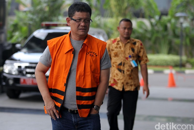 Erwan Malik menjalani pemeriksaan dengan memakai rompi tahanan KPK.