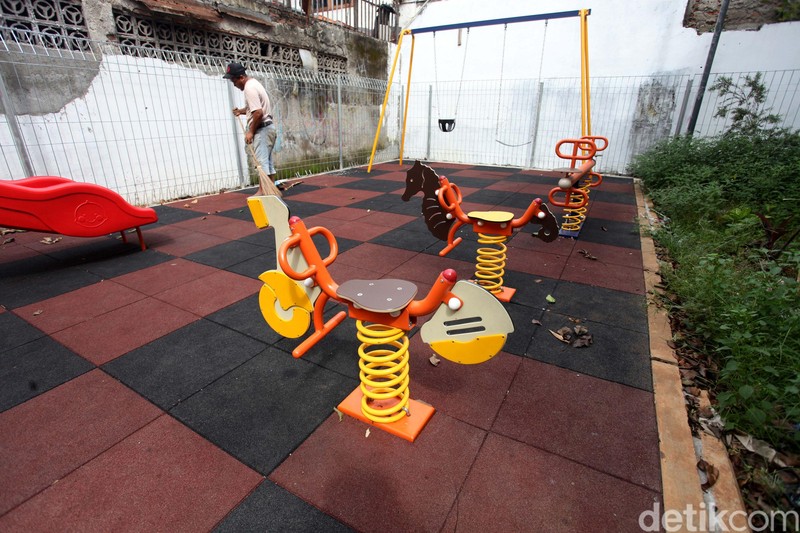 RPTRA di Palmerah Ini Belum Dibuka untuk Umum BAGIKAN URL telah disalin Petugas membersihkan area RPTRA Asri 13. RPTRA itu sudah dilengkapi dengan arena bermain anak. RPTRA ini sebenarnya sudah diresmikan oleh Gubernur DKI Djarot Saiful Hidayat pada 10 Oktober 2017. Kertas berisi pengumuman bahwa RPTRA belum terbuka untuk umum terpampang di kaca sebuah bangunan. Di RPTRA itu juga sudah terdapat tempat sampah dan plang larangan merokok. RPTRA ini juga dilengkapi dengan lapangan bulutangkis. Ruang Publik Terpadu Ramah Anak (RPTRA) Asri 13 yang sudah selesai pembangunannya belum bisa digunakan secara umum. Di dalam RPTRA terdapat aula pertemuan. Ruang Publik Terpadu Ramah Anak(RPTRA) ini berada di Jalan Rawa Belong, Palmerah, Jakarta Barat. Plang kampung KB terpampang di area RPTRA.