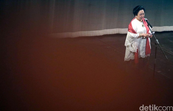 Jakarta - Megawati Soekarnoputri memperingati HUT ke-71 di TIM, Jakarta Pusat. Peringatan HUT ini dimeriahkan dengan teater kebangsaan berjudul 'Satyam Eva Jayate'.
