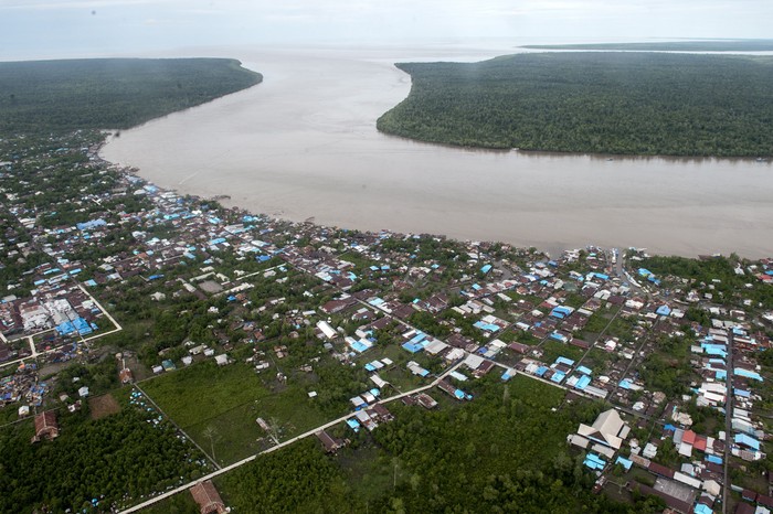 Agats - Asmat adalah salah satu kabupaten di Papua. Ini potretnya dari udara