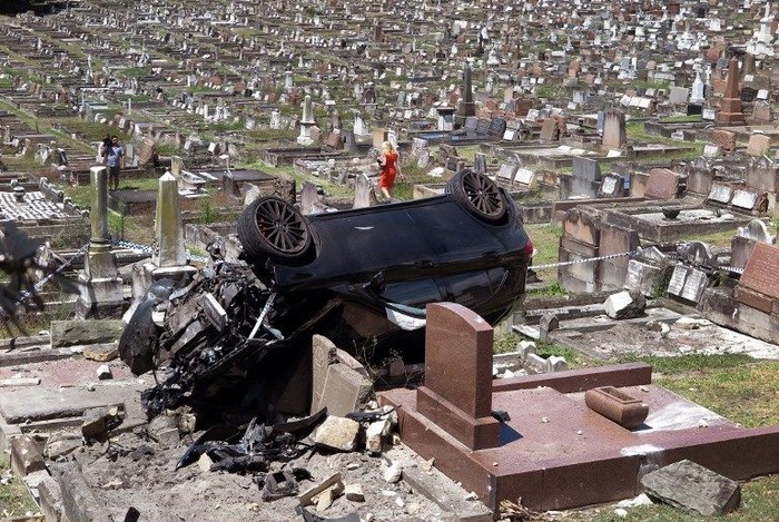 Bruk! Mobil Tabrak Kuburan di Sydney Hingga Hancur
