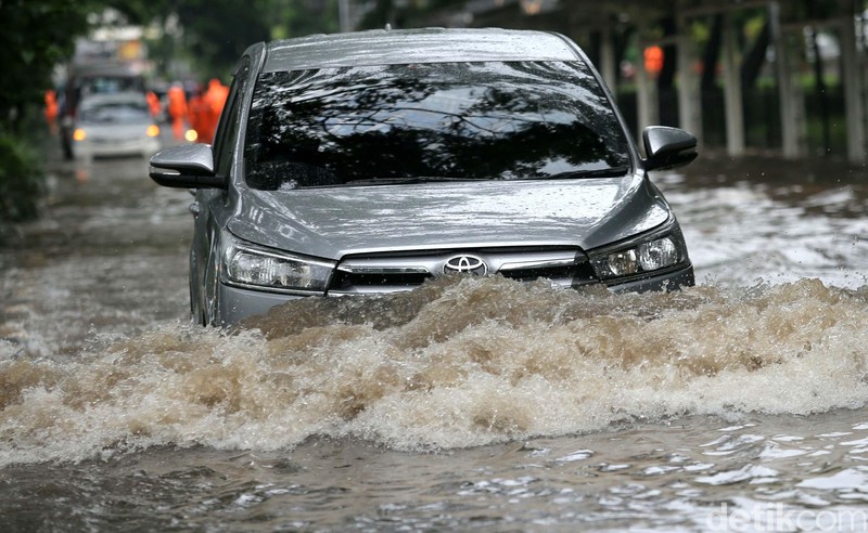 Aksi Pengendara Terobos Banjir di Cempaka Putih BAGIKAN URL telah disalin Kendaraan melintasi banjir di Jalan Letjen Suprapto, Cempaka Putih, Jakarta Pusat, Kamis (15/2/2018). Banjir ini disebabkan hujan deras yang mengguyur Jakarta. Ketinggian air mencapai 50 cm. Sejumlah pengendara motor mogok akibat menerobos banjir. Bajaj menerobos banjir. Anak-anak bermain di genangan air. Drainese yang buruk juga jadi salah satu penyebab banjir.