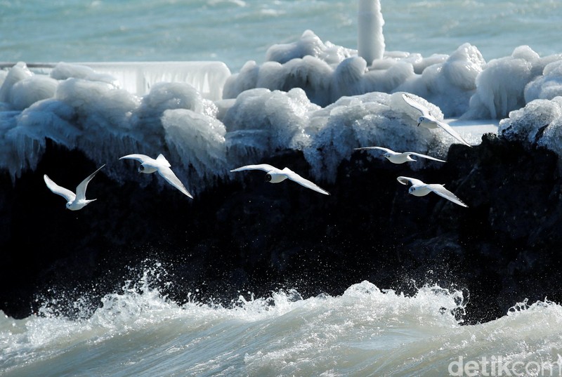 Foto: Membeku! Benda-benda Ini Jadi Cantik BAGIKAN URL telah disalin Burung camar terbang di atas es di Danau Leman di Geneva, Swis, Senin (26/2). REUTERS/Denis Balibouse. Ketika pohon, pagar dan kursi di sekitar Danau Leman membeku. REUTERS/Denis Balibouse. Pohon ini seperti memiliki daun es. REUTERS/Denis Balibouse. Dermaga jadi terlihat menarik dengan hamparan es. REUTERS/Denis Balibouse. Batang-batang es yang meruncing terlihat cantik bukan? REUTERS/Denis Balibouse. Kolam ini seperti memiliki air mancur yang membeku. REUTERS/Stefan Wermuth. Air mancur di Istana Federal Swis membeku. REUTERS/Stefan Wermuth.