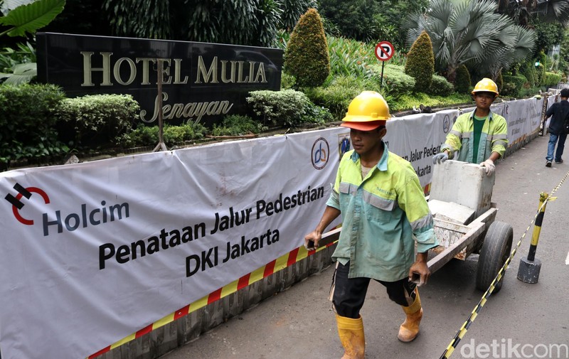 Sambut Asian Games, Trotoar di Kawasan Senayan Dilebarkan BAGIKAN URL telah disalin Dua orang pekerja mengangkut material yang akan digunakan untuk memperbaiki trotoar, Selasa (27/2/2018). Pekerja menggali trotoar lama untuk dibangun dengan yang baru. Pekerja membongkar trotoar yang akan dibangun. Pekerja membuat rangka trotoar. Trotoar itu dikerjakan secara 24 jam. Trotoar itu dilebarkan sepanjang kurang lebih 2 meter. Para pekerja dibagi menjadi dua shift, yaitu dari pagi hingga sore dan sore hingga pagi hari. Pelebaran trotoar itu dalam rangka menyambut Asian Games 2018. Pekerja menyiapkan material untuk perbaikan trotoar.
