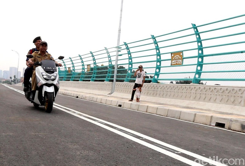 Flyover Bintaro Permai Siap Beroperasi BAGIKAN URL telah disalin Pengendara motor terlihat melintas di Flyover Bintaro Permai, Jakarta Selatan, Selasa (6/3/2018). Flyover tersebut mulai diuji coba dan dibuka untuk publik hari ini. Flyover ini terbentang sejauh 400 meter. Proyek ini dibangun tepat diatas rel kereta commuter dari Kebayoran Baru ke Stasiun Pondok Ranji. Flyover dibangun selama satu tahun sejak awal 2017. Sebelumnya, beberapa warga sudah mencoba flyover yang sudah rampung dalam beberapa hari terakhir ini untuk berolahraga. Warga saat melintas di pedestrian flyover.
