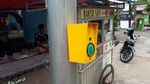 Bagi warga yang mau menyeberangi jalan harus menekan tombol hijau di tiang lampu lalu lintas yang ada di sisi trotoar