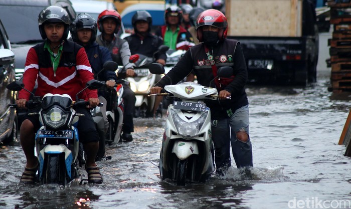 Banjir ini menyebabkan arus lalu lintas tersendat.