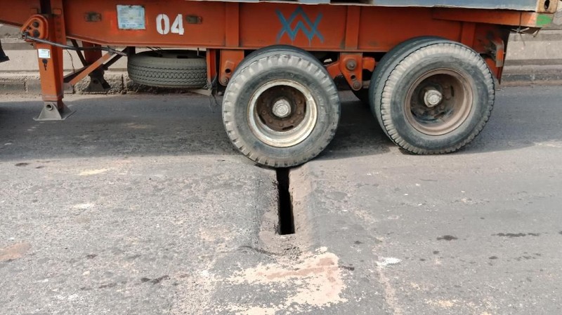 Tidak jarang sepeda motor yang terlihat seperti meloncat karena tidak mengetahui adanya rongga di jalan tersebut. (Foto: Eva Savitri/detikcom)