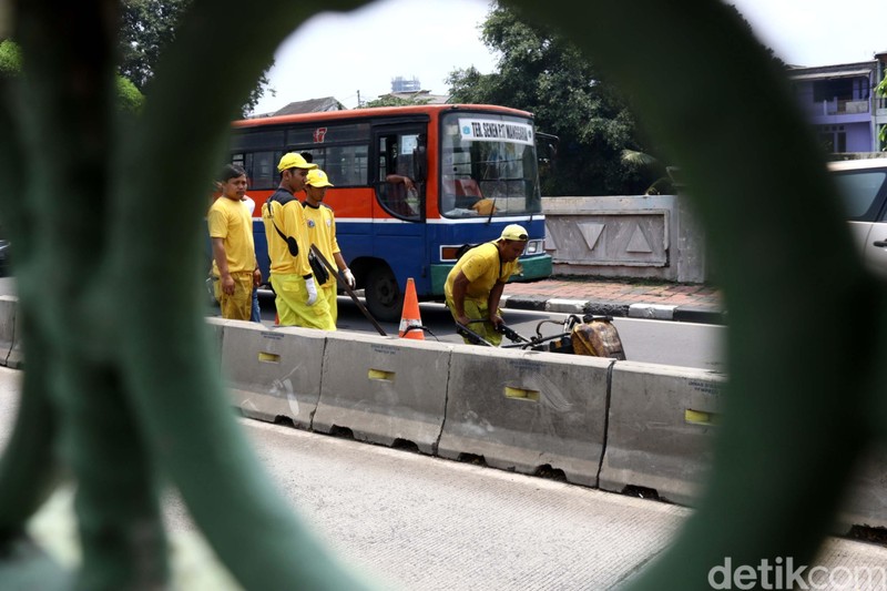 Aksi Tim Kuning Tambal Jalan Berlubang BAGIKAN URL telah disalin Sebanyak 11 orang diturunkan untuk menambal jalan yang berlubang. Sebelumnya jalan Sultan agung banyak yang berlubang. Lubang tersebut, sangat membahayakan pengendara. Beruntung, kini lubang tersebut telah ditambal. Penambalan jalan ini sudah dimulai sejak jam 8 pagi. Akibat pengerjaan ini, lalu lintas sedikit tersendat. Penambalan menggunakan aspal panas, sehingga dapat langsung digunakan. Pekerja meratakan aspal. Setelah diratakan, aspal kemudian dipadatkan. Meski tersendat, jalan masih dapat dilintasi.