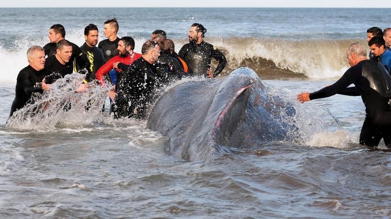 Melihat Proses Evakuasi Paus di Pantai Argentina