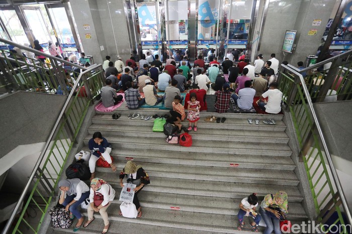 Jakarta - Umat muslim melaksanakan ibadah salat jumat di kawasan Blok B Pasar Tanah Abang, Jakarta. Area Masjid yang tak memadai membuat jemaah sholat di lorong pasar.