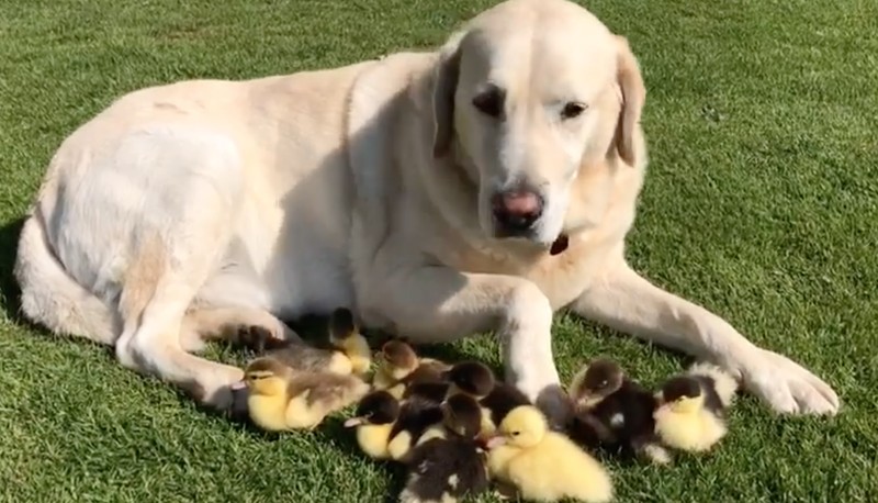 Foto: Bikin Gemas! Anjing Ini Jadi 'Ayah Angkat' 9 Anak Bebek