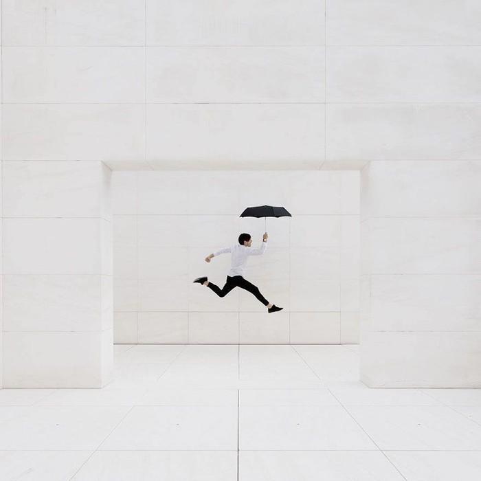 Daniel berpose seperti sedang menabrak sebuah dinding diantara lorong pintu. Permainan warna netral di foto ini membuat Daniel menjadi lebih terlihat dan menjadi fokus foto karena menggunakan pakaian hitam. Istimewa/Boredpanda.