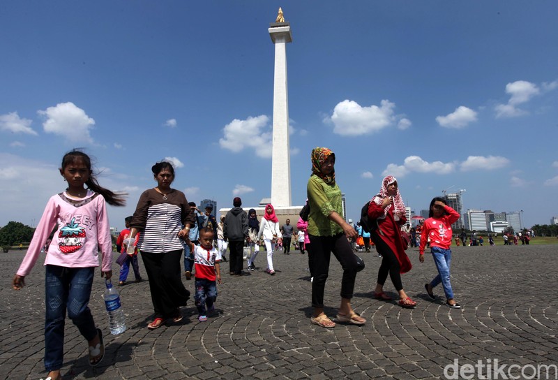 Monas Dipadati Pengunjung BAGIKAN URL telah disalin Warga dari berbagai daerah datang ke Monas, Senin (18/6). Antrean warga yang ingin ke puncak Monas. Lelah menunggu, warga tampak tertidur. Kereta wisata diserbu pengunjung. Sambil menunggu antrean, 3 turis asing bermain kartu. Museum Monas juga dipadati pengunjung. Tiket untuk naik ke puncak Monas tampak sudah habis, meski antrean pengunjung masih panjang.