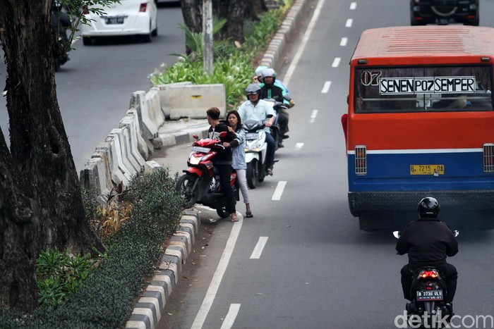 Tim hijau DKI Jakarta sempat melarang pengendara melompati pembatas jalan.