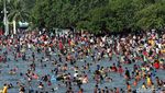 Penggratisan tiket masuk Ancol ini tentunya tak akan dilewatkan warga. Tempat wisata Ancol terlihat penuh didatangi warga sejak tadi pagi.