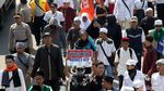 Massa aksi mulai melakukan longmarch ke Bareskrim Mabes Polri di Gedung KKP, usai menggelar Salat Jumat berjamaah di Masjid Istiqlal.