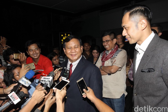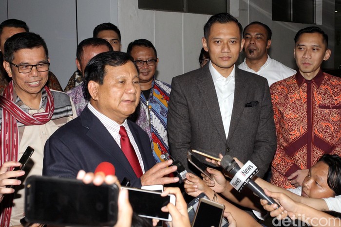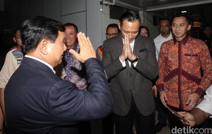 Jakarta - Ketum Partai Gerindra Prabowo Subianto menjenguk Ketum Partai Demokrat (PD) Susilo Bambang Yudhoyono (SBY) di rumah sakit. SBY tengah dirawat karena kelelahan.