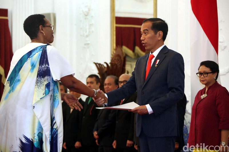 Jokowi Terima Surat Kepercayaan Delapan Dubes Negara Sahabat BAGIKAN URL telah disalin Presiden Jokowi menerima Surat Kepercayaan Duta Besar Luar Biasa dan Berkuasa Penuh dari negara sahabat. Sebanyak delapan dubes negara sahabat menyerahkan surat kepercayaan kepada Jokowi. Jokowi menerima para dubes negara sahabat dengan didampingi Ibu Negara Iriana. Satu persatu dubes dari negara sahabat menyerahkan surat kepercayaan kepada Jokowi. Menteri Luar Negeri Retno Marsudi juga ikut mendampingi Jokowi menerima para dubes negara sahabat. Jokowi mengajak para dubes berbincang di beranda Istana Merdeka.