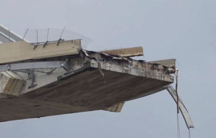 Menteri Transportasi Italia Danilo Toninellu mengatakan insiden jalan layang ini mungkin menjadi 'tragedi besar' bagi Italia.Β (Foto: Dok. Local Team via Reuters TV/REUTERS)