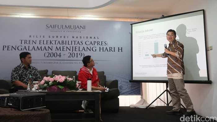 Jakarta - SMRC mengadu elektabilitas dua capres yakni Joko Widodo dan Prabowo Subianto jelang Pilpres 2019. Hasilnya, Jokowi unggul dengan perolehan di angka 60%.