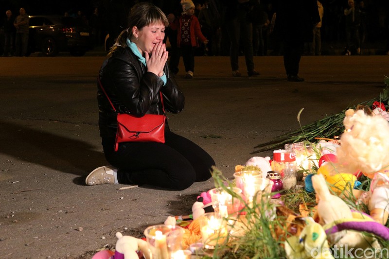 Duka Keluarga Korban Penembakan Crimea BAGIKAN URL telah disalin Seorang warga, keluarag dari salah satu korban tewas tampak menangis. REUTERS/Pavel Rebrov. Ia terlihat tersedu-sedu. REUTERS/Pavel Rebrov. Warga memberikan bungan dan menyalakan lilin. REUTERS/Pavel Rebrov. 19 Orang tewas dan puluhan terluka dalam insiden penembakan di kampus Kerch, Crimea. REUTERS/Pavel Rebrov. Petugas masih berjaga di kampus tersebut. REUTERS/Pavel Rebrov.