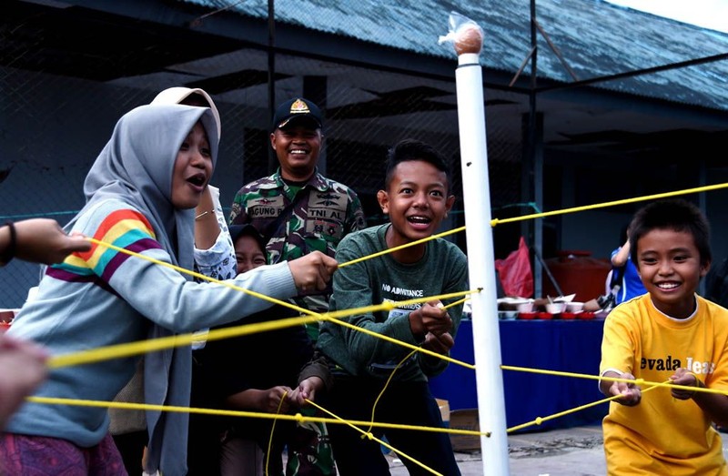 Kegiatan ini untuk menghilangkan trauma akibat gempa bumi dan tsunami. Istimewa/Puspen TNI.