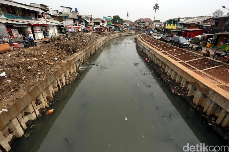 Mulai dari Jalan Palmerah I depan Pasar Pisang hingga menuju arah Kemanggisan, normalisasi masih dalam pengerjaan.