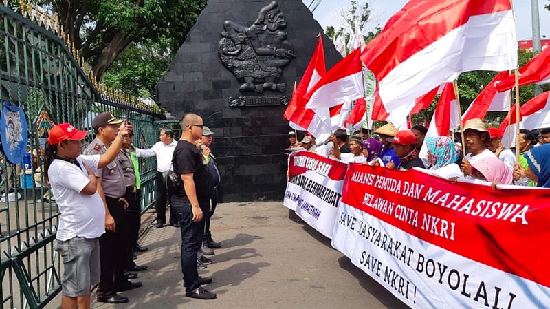 Mereka mengkritik dan menuntut minta maaf secara nasional atas stateman prabowo subianto dugaan indikasi penghinaan terhadap warga Boyolali dan Sandiaga Uno yang melangkahi makam saat ziarah. Foto: dok. Aliansi Masyarakat Jawa Tengah