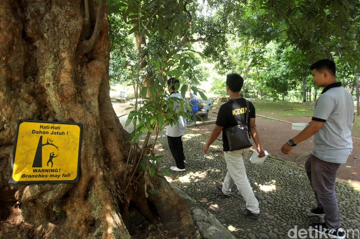 Meski telah dibuka kembali untuk umum, sejumlah tanda himbaunan diletakkan di sekitar pohon-pohon di Kebun Raya Bogor untuk mengantisipasi jika angin kencang kembali menumbangkan pohon-pohon di kawasan tersebut.