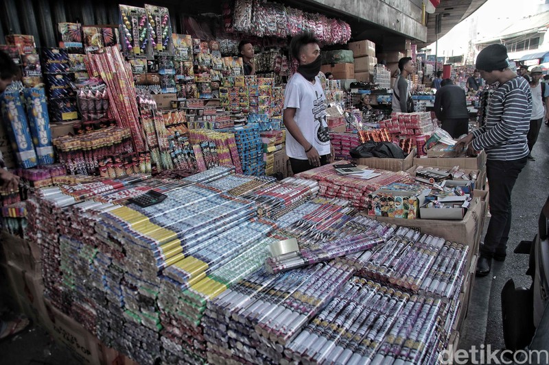 Jelang Tahun Baru, Penjual Petasan Kian Menjamur BAGIKAN URL telah disalin Penampakan para penjual petasan di kawasan Asemka, Jakarta Barat, Jumat (28/12/2018). Jelang tahun baru 2019, para pedagang musiman tak mau melewatkan kesempatan untuk mencari keuntungan. Menurut pedagang, menjelang perayaan tahun baru 2019, penjualan petasan di Jakarta meningkat. Hal itu dikarenakan banyaknya warga yang merayakan tahun baru dengan petasan. Menurut pedagang mereka berjualan sejak dua minggu yang lalu hingga tanggal 31 Desember. Harga yang ditawarkan bervariasi dari Rp 10.000 hingga Rp 8 juta. Petasan yang dijual memiliki bentuk dan variasi yang berbeda. Para pembeli mulai memenuhi lapak untuk berbelanja petasan dan kembang api.