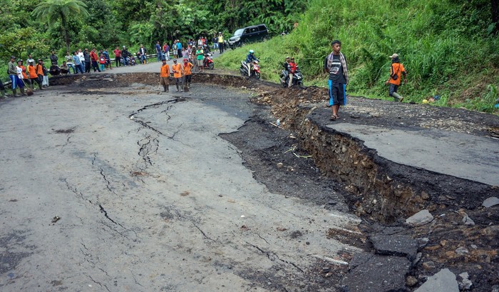 Jakarta - Jalan penghubung Kabupaten Pekalongan dengan Kabupaten Banjarnegara amblas sedalam 50-100 cm. Amblasnya jalan tersebut disebabkan curah hujan yang tinggi.