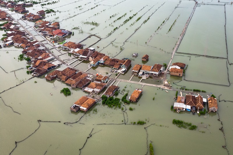 Sebagian lahan kini telah menjadi perairan akibat kenaikan permukaan air laut. ANTARA FOTO/Aji Styawan.