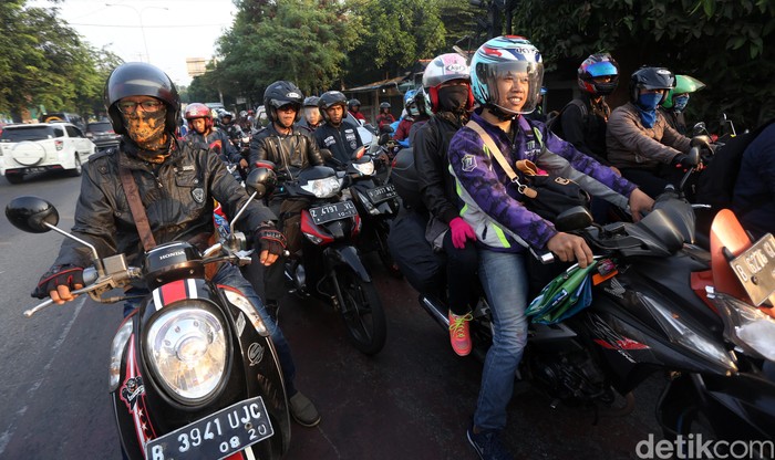 Jakarta - Hari ini, pemudik dengan sepeda motor mulai melintasi kawasan Kalimalang, Bekasi. Pemudik terlihat semakin banyak.