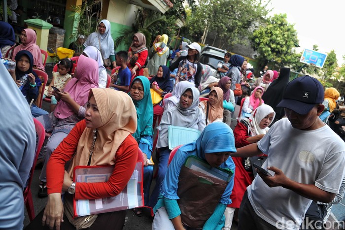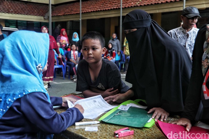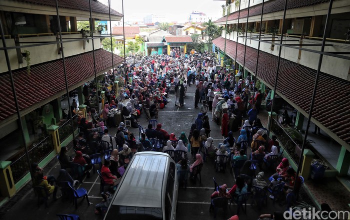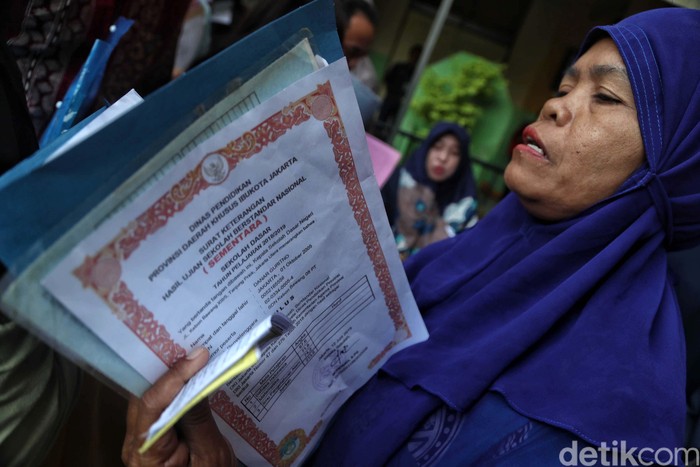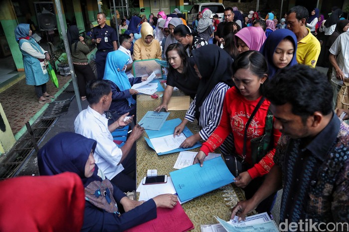 Jakarta - Pendaftaran Penerimaan Peserta Didik Baru (PPDB) DKI Jalur Zonasi untuk SMP dibuka. Di SMPN 129 Papanggo, Jakut, ratusan orang tua murid mengantre sejak pagi.