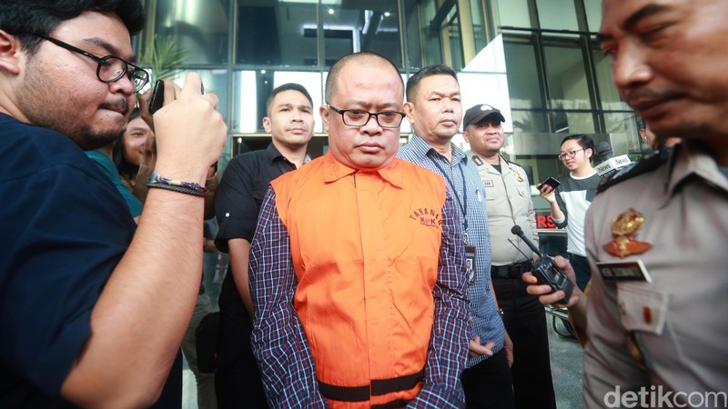 Gusrizal keluar gedung KPK, Jalan Kuningan Persada, Jakarta, dengan mengenakan rompi tahanan warna oranye.