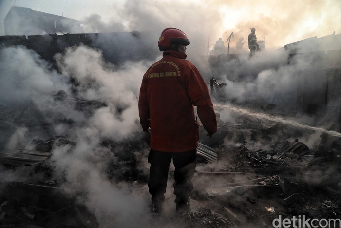 Jakarta - Kebakaran rumah terjadi di Warakas, Jakarta Utara. 10 Unit mobil kebakaran dikerahkan untuk memadamkan api. Begini aksi mereka.
