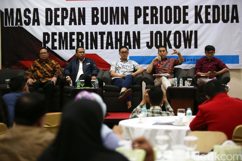 Diskusi ini membahas masa depan BUMN dalam pemerintahan Jokowi periode kedua.