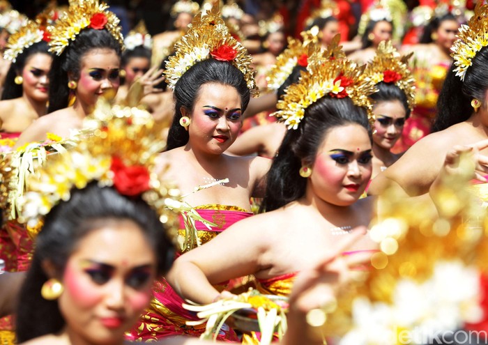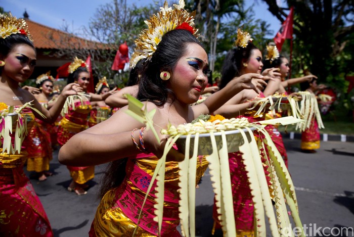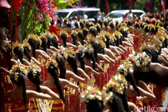 Bali - Kesenian khas Pulau Dewata Bali turut meriahkan Kongres V PDIP. Hal itu terlihat dari penampilan ratusan penari yang bersiap sambut tamu yang hadir di acara itu